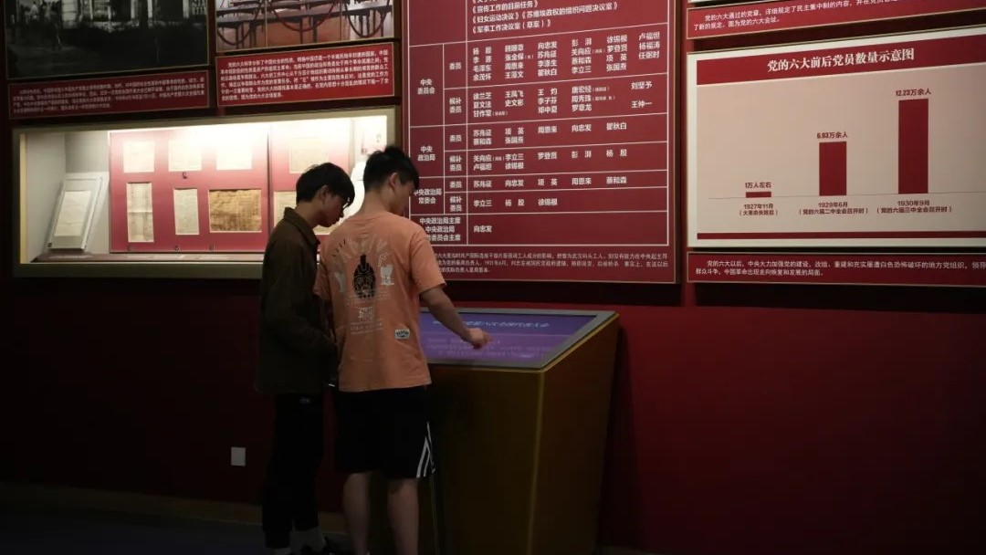师生们有序走入中国共产党历史展览馆,伴随着讲解员的解读,在文字、图片、实物、影像中,见证了革命先辈的顽强奋斗、坚定信仰,感受到革命胜利的来之不易,更体会到新时代百年未有之大变局下,中国式现代化带来的伟大成就。