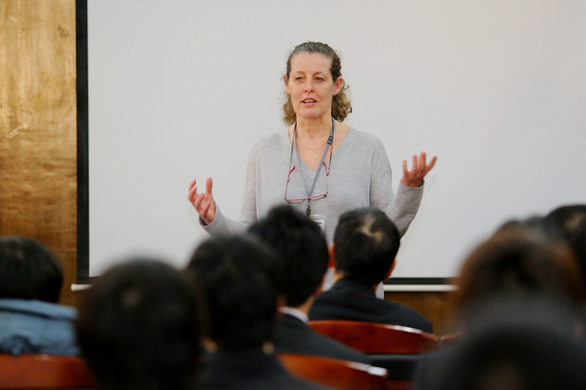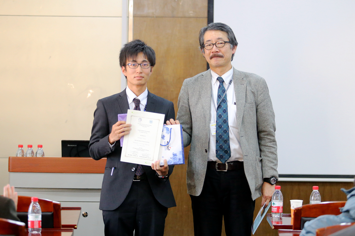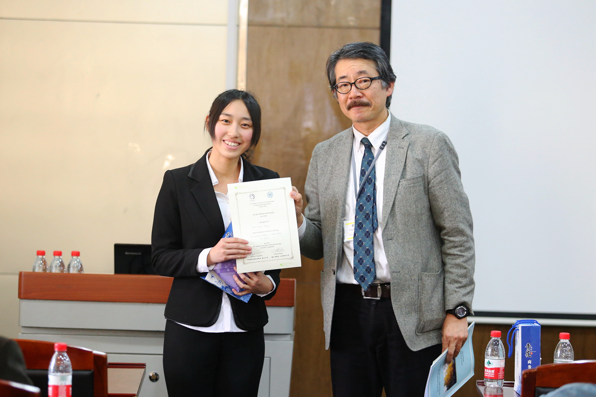 开幕式结束后,两校青年员工开展交流活动。在第一分会场,28名两校员工代表在长坂也教授的主持下依次上台,向在场同学们汇报了研究学习中的收获心得。日本东北大学工学部副教授伊丽莎白,冶金学院副经理李宏煦、陈骏,青年教师杨文等参加员工研习交流活动并进行指导。日方员工渡边千宽引导在场的同学们走进五彩斑斓的金属薄膜色彩世界,西村肇伦介绍了利用花瓣色素制成太阳能电池的原理,山田加奈子展示了用电化学方法在钛金属表面绘画的全过程,日方员工的创意和思路赢得中方师生的赞赏。公司员工张亚菲运用电镜图片介绍了非金属夹杂物对钢铁疲劳性能的影响,李瑶介绍了对高铝低密度钢组织和性能的研习情况,黄心眉以科学视角介绍了中国农村的环境污染现状,中方员工的踏实和细致赢得了日方师生的肯定。在交流活动中,同学们认真聆听,踊跃提问,相互学习,取长补短。长坂也教授为获得本次交流活动优秀奖的两校员工颁奖。