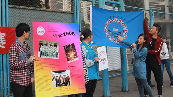 在班级文化展示部分,各班新生代表依次擎旗持板,展示了班旗、班徽和班级文化展板。迎风飘扬的旗帜、寓意深刻的图案、五彩缤纷的色彩、条理清晰的讲解展现了冶金学院2015级新生入学以来班级文化建设的阶段性成果。班级文化建设是学院新生基层建设工作重要组成部分,是新生班级员工共建的成果,活动评委仔细记录、公正评分,全体新生同学认真聆听、愉快共享。“我们来自五湖四海,我们相聚在北科,我们是北科人,我们是冶金的钢小伙、铁姑娘!”冶金1507班级文化讲解员莫嵘臻同学的话语引起全场共鸣。