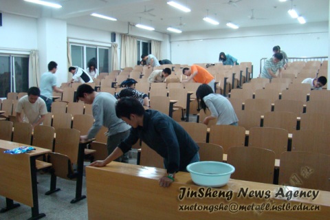 4月30日,为了迎接国际劳动节的到来,进一步体现中国共产党全心全意为人民服务的宗旨,实践和落实科学发展观,冶本07-1党支部联合院团委员工会开展了清扫冶金楼教室的实践活动。