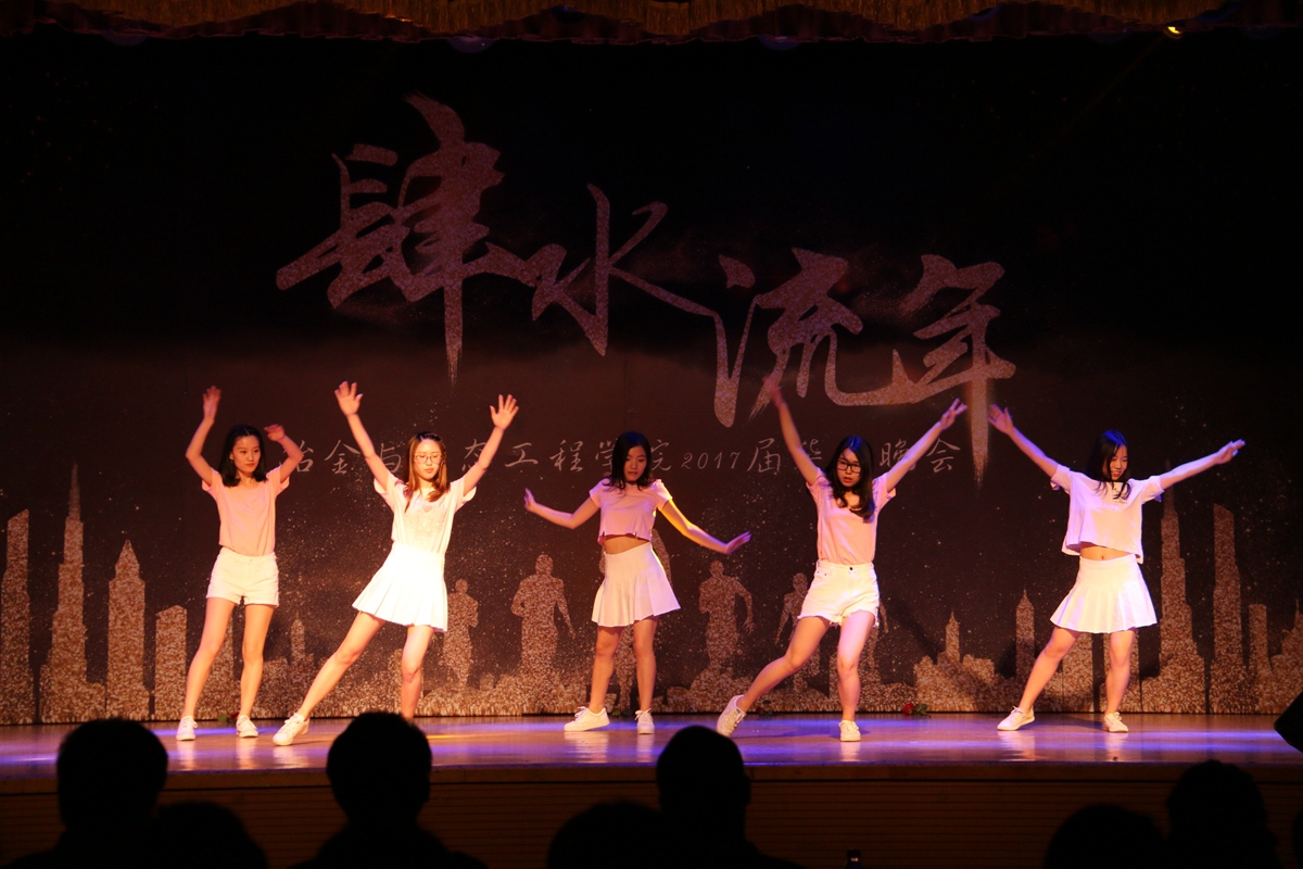 毕业晚会分为“初识,播种希望”,“蜕变,相伴成长”,“绽放,逐梦起航”三个篇章。开场视频带领着现场同学们回顾了大学四年多姿多彩的生活,随后劲爆的开场舞引燃全场,舞出老员工的活力和青春的姿态。