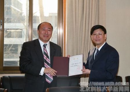 12月22日学校举行聘任仪式。董事长徐金梧为赵立志教授颁发聘书