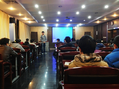 交流会在11级年级长赵天骄同学的主持下拉开了帷幕。本09级优秀的学长学姐,分为出国和保研两组,依次介绍了自己的经历和经验。