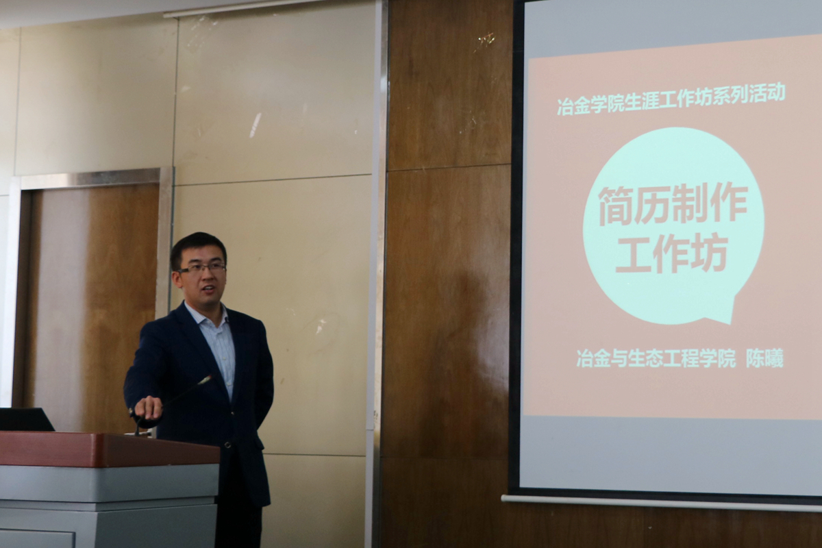 “个人信息、教育背景、技能专长、科研经历、实习经历、实践经历、荣誉奖励,这是科研与技术类岗位的简历结构,突出的是专业知识能力和科研经历”、“个人信息、教育背景、技能专长、实习经历、员工工作、科研经历、荣誉奖励,这是管理与营销类岗位的简历结构,突出的是团队沟通能力与综合素质”、“要分析用人单位与具体岗位的需要来安排简历布局,比如钢材贸易企业和钢铁期货企业就更看重同学们对产品的了解,这时候就要突出同学们的专业知识和科研经历”,陈曦老师结合冶金工程专业、科技史专业毕业生就业去向的基本类型,向同学们展示了不同岗位简历制作的基本内容结构。“职业能力是用人企业最看重的内容,是衡量人职匹配的重要尺度,要体现在前三分之一的篇幅中”,陈曦老师结合自身在中央企业人力资源部门的实习工作经历,要求同学们在简历中体现企业与岗位的针对性。