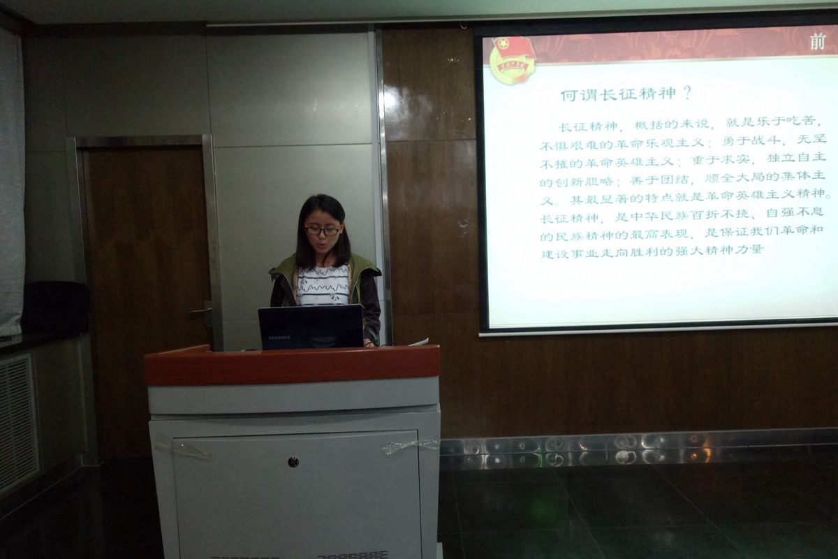 赵秀云同学围绕“学长征精神,做红色传人”进行了声情并茂的演讲,她指出在经济全球化和世界多极化的背景下,在建立社会主义市场经济的新形势下,学习长征精神,对提高当代老员工的思想政治觉悟,培养中国特色社会主义的合格建设者和接班人,具有重要意义。并提出学习长征精神需要确立远大理想信念培养乐观主义精神,培养艰苦奋斗精神,培养万众一心团结拼搏的集体主义精神。