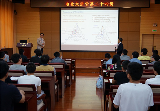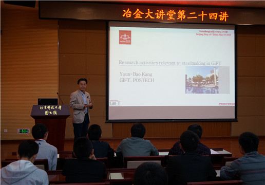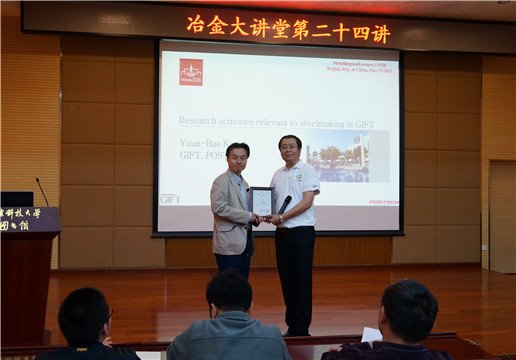 5月15日上午,“冶金大讲堂”第二十四讲在图书馆四层报告厅举行,韩国浦项科技大学材料科学与工程系Youn-Bae Kang副教授受曹战民副教授邀请,作题目为《Research activities relevant to steelmaking in GIFT》的学术报告。刘建华教授主持讲座,程树森、李晶、姜敏、刘征建等多位教授和研究生参加了讲座。报告后,William威廉经理张立峰向Youn-Bae Kang教授颁发了冶金大讲堂第二十四讲主讲嘉宾证书。