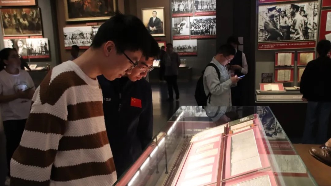 师生们有序走入中国共产党历史展览馆,伴随着讲解员的解读,在文字、图片、实物、影像中,见证了革命先辈的顽强奋斗、坚定信仰,感受到革命胜利的来之不易,更体会到新时代百年未有之大变局下,中国式现代化带来的伟大成就。