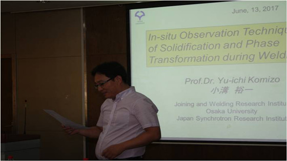 在讲座中,小溝裕一教授主要介绍了通过利用高温激光共聚焦显微镜和同步辐射技术原位观察焊接凝固及冷却时马氏体、贝氏体、针状铁素体等典型组织的形成过程,以及焊接残余应力的分布,重点关注了夹杂物在相变过程中的作用机制,并通过一系列实时观察视频向大家展示了相关技术的应用,激发了老师和同学们的极大兴趣。