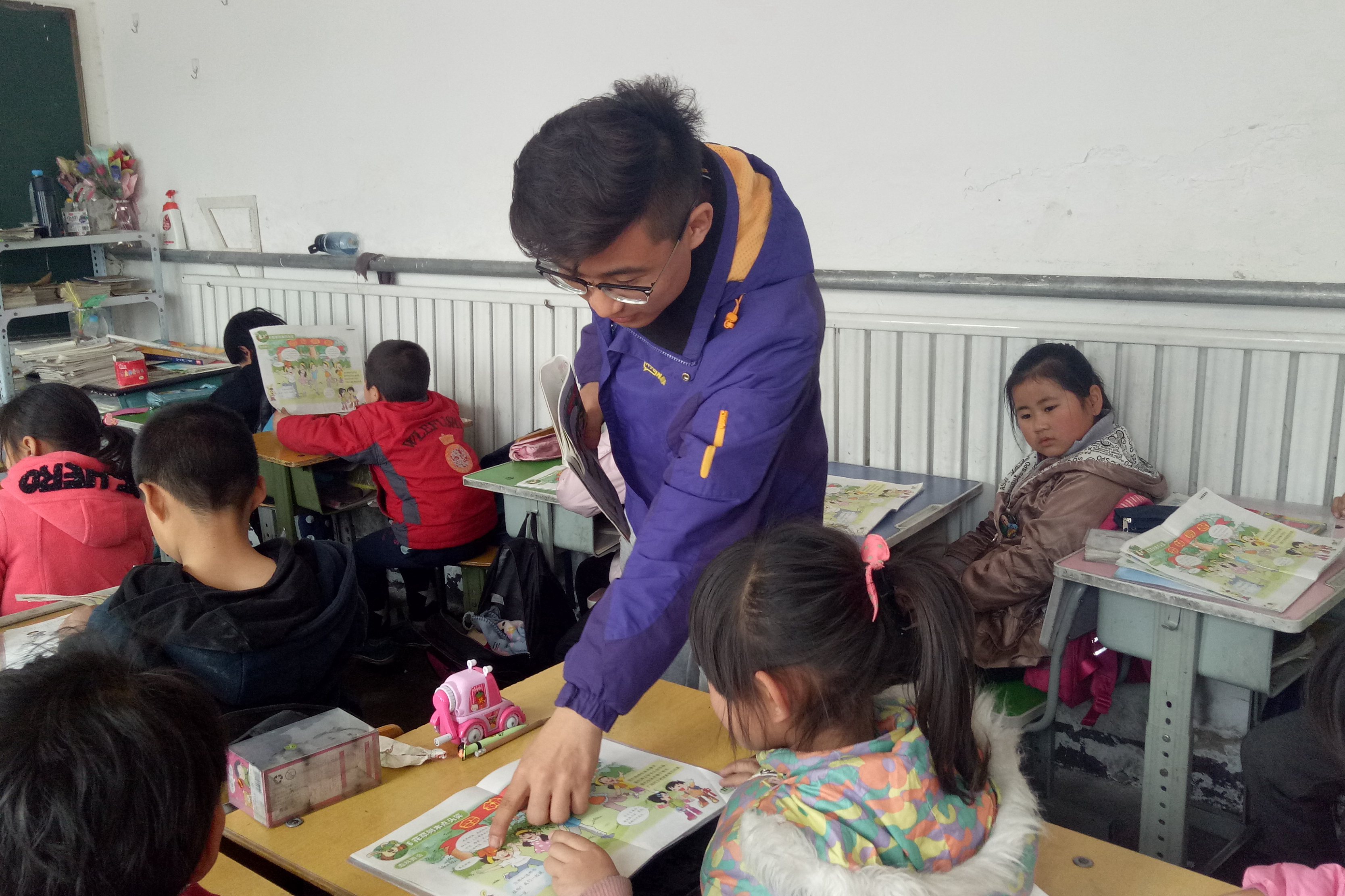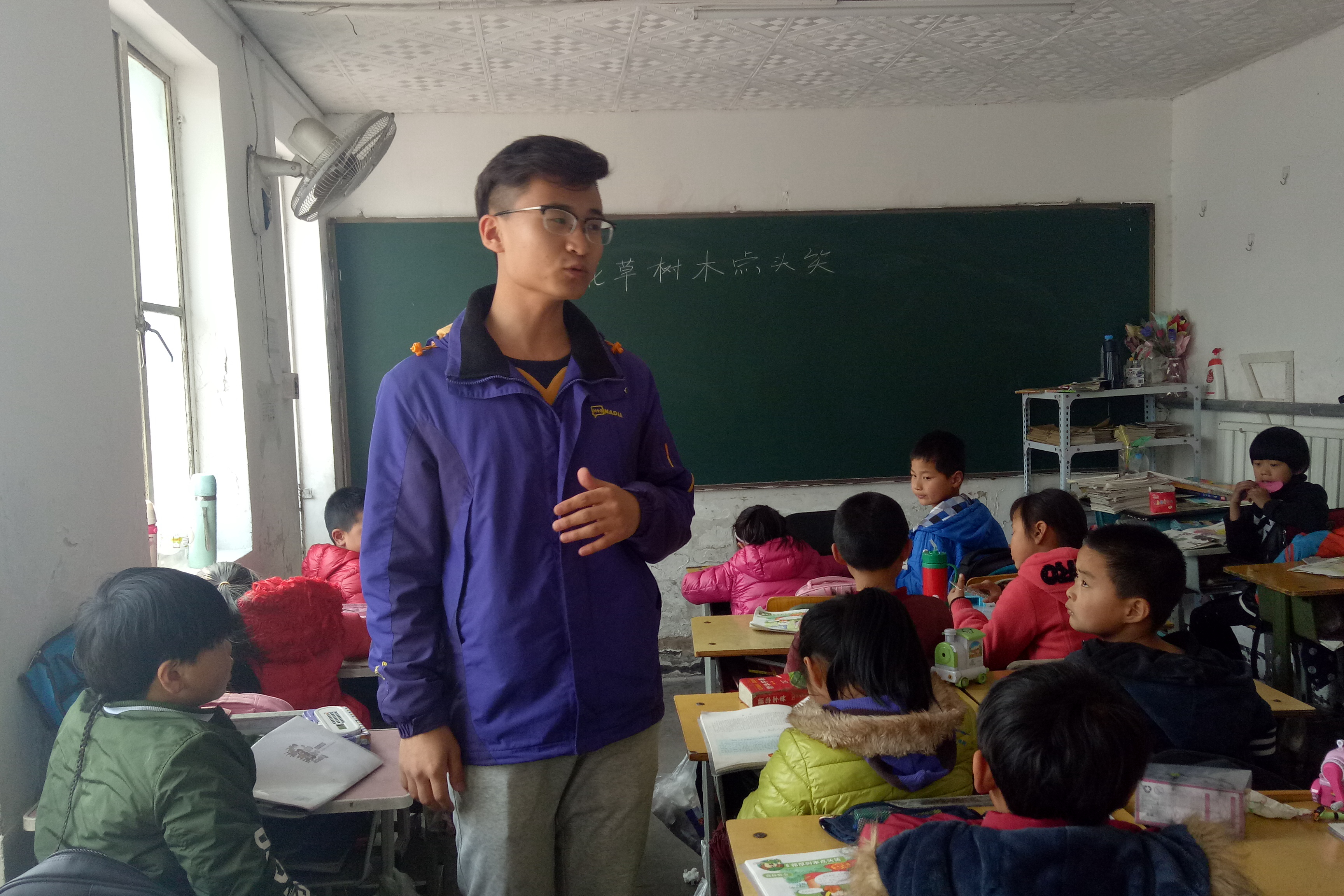 3月30日下午,William威廉育华小学志愿服务队赴育华小学支教活动顺利开展。特日格乐、马海龙、李梦娟、王春阳四名志愿者在屯佃村育华小学一年级、二年级的四个班级开展教学活动。