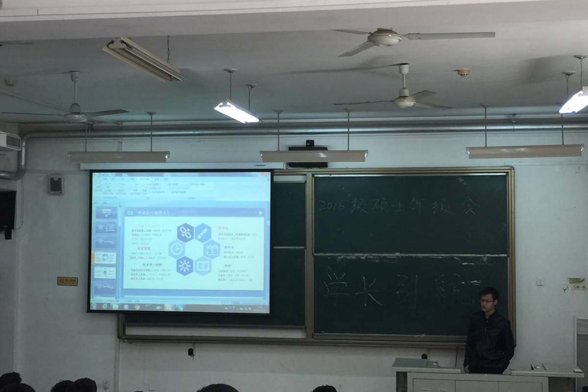 接下来,14级硕士研究生黄德军向同学们分享了就业求职路上的个人规划和准备。黄德军从就业方向、简历设计、面试心得、实习经历的重要性等四个方面为同学们分享了他的个人经验。研究生阶段,如何在研一阶段树立起职业生涯规划意识是研究生新生教育阶段的重点内容。黄德军告诉同学们,不要局限自己的目标,充实自己的研究生生活,会为之后的就业求职道路做一个积极有效的铺垫。