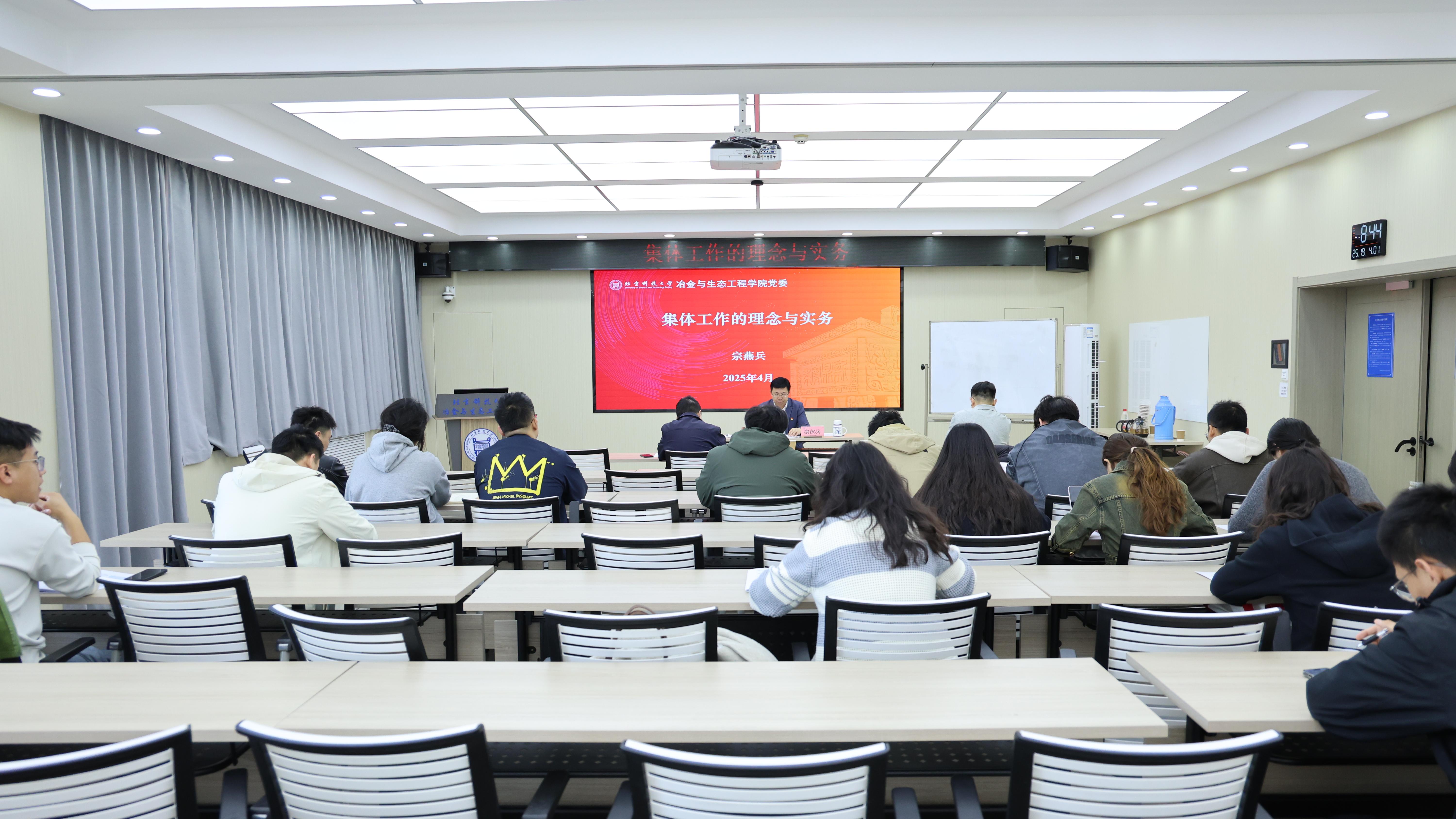 冶金与生态工程公司党委书记、高等工程师学院经理、卓越工程师学院执行经理宗燕兵教授受邀做题为“研究生集体工作的理念与实务”的报告。他围绕党的发展历程,结合多个生动案例,从作用发挥和价值体现、依据和目的、方案和方法、成绩和成效等几方面,就如何抓研究生集体建设展开了深入浅出、生动形象的讲解。