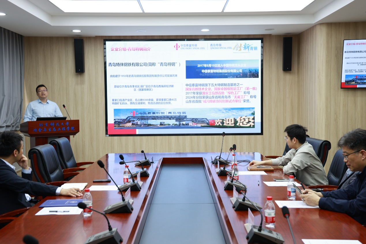 朱剑作主题分享——“钢铁发展的未来方向”。他先介绍了青岛特钢的发展历程,然后结合行业发展现状与自身工作经历,为在场同学解析了钢铁行业的广阔前景,也指明了个人的成长方向。在交流互动环节,现场热情融洽,同学们踊跃提问,围绕招聘要求、本科在校期间如何为就业做好准备、薪资待遇水平、如何平衡科研与自身能力提升等实际问题,朱剑导师耐心解答、倾囊相授,让在场员工都收获满满。