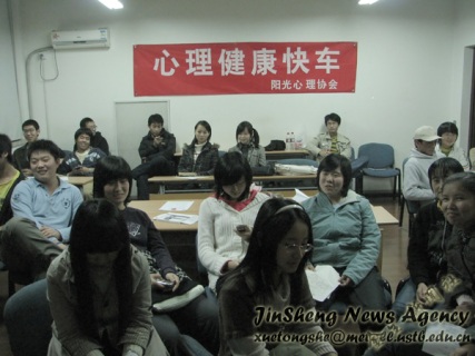这次活动是院阳光心理协会本学期的系列活动――“心理健康快车”的第三场,而前两场已经在冶金09级的两个班开展,并取得了非常好的效果。而本场活动,09生态的同学们也以非常高的热情投入到了整个活动当中。