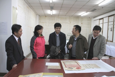 权良柱副董事长、梅建军教授参观纸质文物保护修复实验室