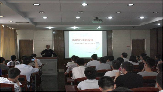 张文海院士结合有色冶金领域已经成熟应用的“闪速熔炼技术”,创新地提出了“非高炉闪速炼铁”。这是一个富有挑战的多领域、多学科交叉的研究方向。由于传统的高炉炼铁存在着高能耗、周期长的缺点,张文海院士介绍了“非高炉闪速炼铁”具有低能耗、耗时短的优势和巨大的市场应用前景。并展示了目前已经完成的理论研究工作和半工业试验的成果。最后张文海院士表达了“闪铁”的愿景——“为了京津冀的蓝天并领跑世界钢铁”。
