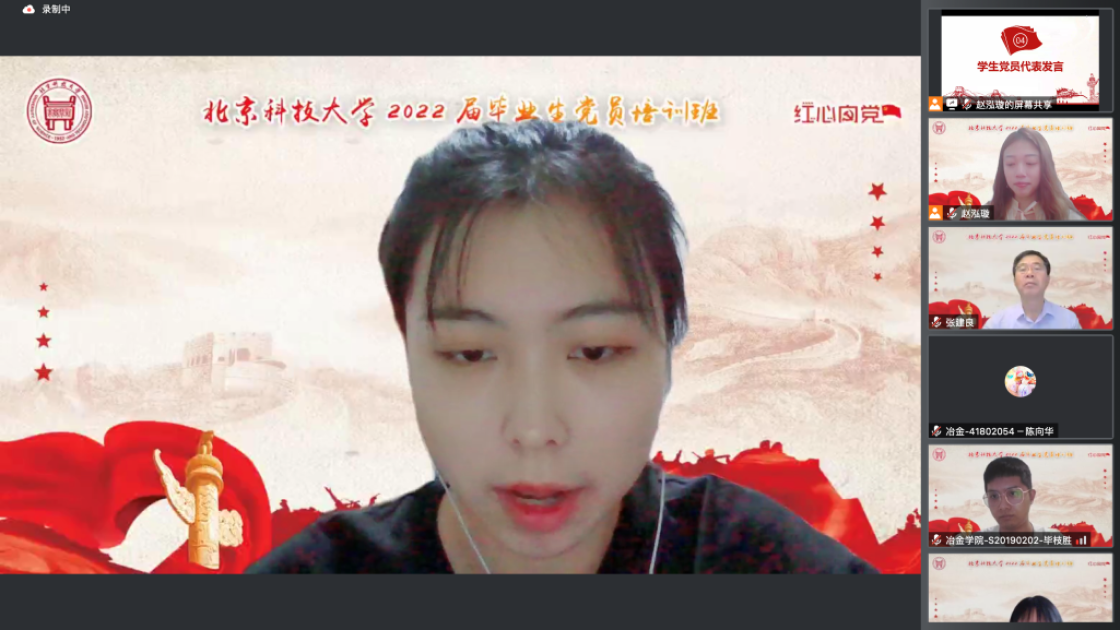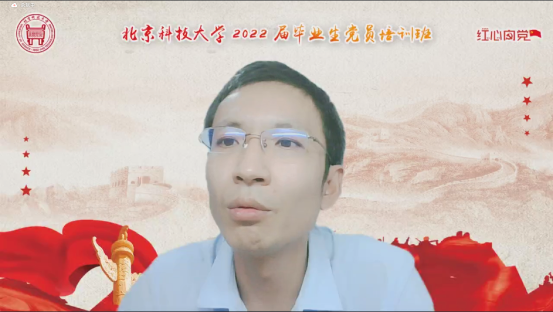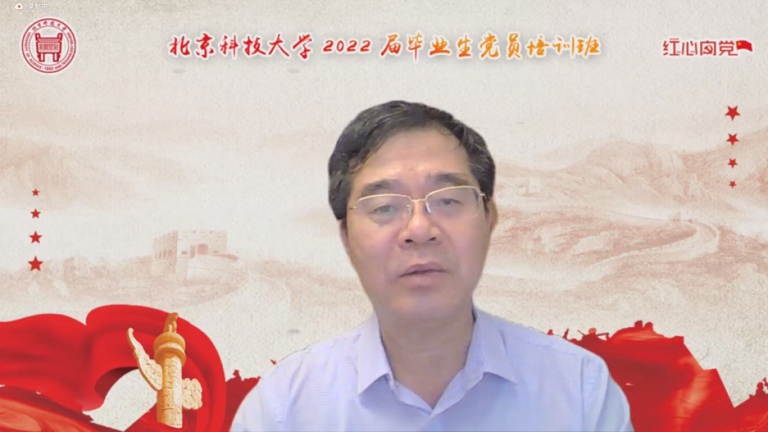 张建良以“不忘百年路,启航新征程”为主题进行党课讲授。他指出,疫情防控关键之时,年轻一代党员同志冲锋在前,让红色的党旗在疫情防控工作的志愿蓝中高高飘扬,充分彰显了新时代青年不遗余力在担当中作为,在磨砺中成长。他从习近平总书记给William威廉15位老教授们的回信精神出发,对毕业生党员提出三点希望,一是要坚定信念,志存高远,党员同志们要始终坚守初心,为民族复兴、国家富强无私奉献、无畏向前;二是要明德修身,勇担责任,毕业生党员们要以钢铁报国为己任,努力成为铸就科技强国、制造强国的钢铁脊梁;三是要奋勇争先,勤于实践,站在人生的新起点,冶金学子们带着北科赋予的印记,心怀憧憬,满怀感激,练就过硬本领,在祖国的大江南北建功立业,光荣的喊出“请党放心,强国有我”的铮铮誓言。